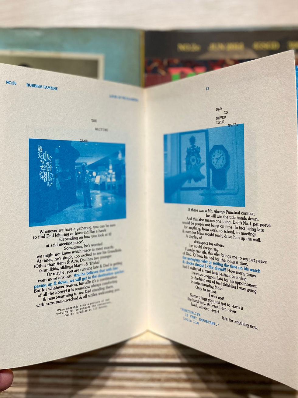 Holycrap.sgRubbish FAMzine No.2 : Till Death Do Us PartSelf-pulishedRe-printed in 2019First published, 2014200 x 150 x 15mm Rubbish Famzine is a bi-annual family zine consisting of dad - Pann, mom - Claire, and their son, Renn & daughter, Aira. This is a reprint version in honor of Por Por, grandmother of Renn and Aria who passed away a year before in 2018. Note: we have really limited numbers of this item; please limit orders to one per person. Orders for more will be refunded.